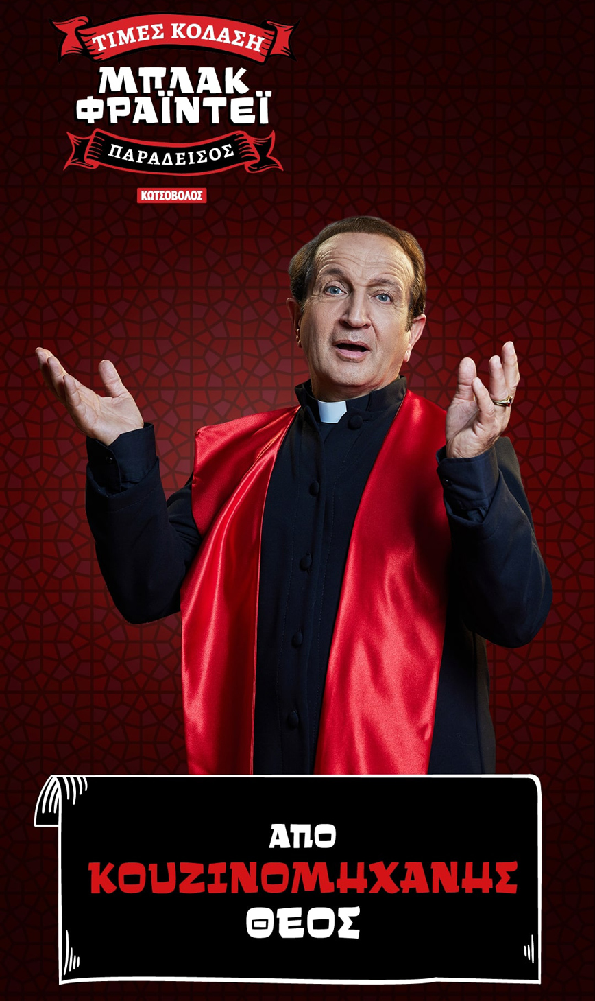 Όλα αυτά παρουσιάζονται με έξυπνο και κωμικό τρόπο σε μια ανατρεπτική ταινία που γράφει ιστορία και «κολάζει»…προκαλώντας αμαρτίες, με πρωταγωνιστή τον πάτερ -έκπληξη Σπύρο Μπιμπίλα, που απογειώνει την καμπάνια με την ερμηνεία του!