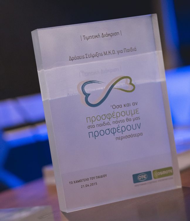 Ο ΟΤΕ και η COSMOTE τίμησαν 16 φορείς που φροντίζουν ώστε τα παιδιά αυτά να έχουν μια πιο ανθρώπινη ζωή, προσφέροντας συνολικά 550.000 ευρώ. Παράλληλα, μαζί με το έργο των φορέων, τιμήθηκαν και οι 4.700 εθελοντές που στέκονται καθημερινά στο πλευρό των παιδιών.