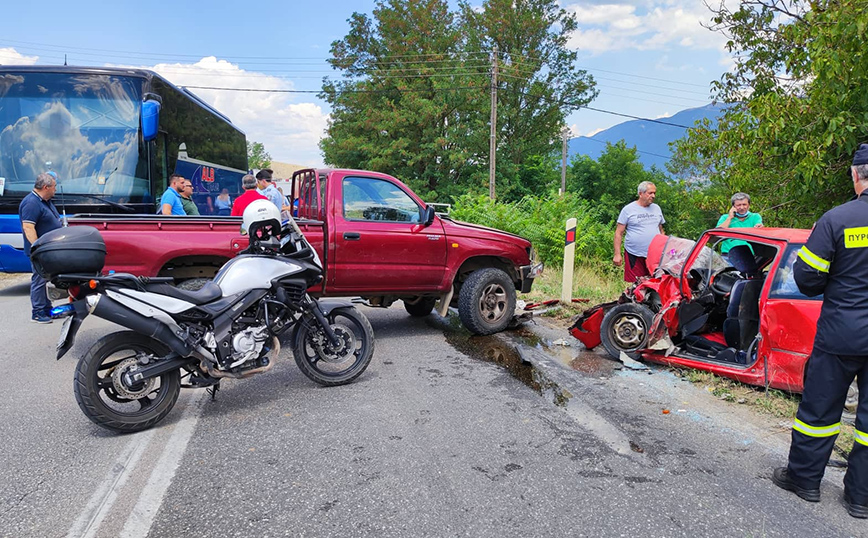 Από τη σφοδρή σύγκρουση νεκρός ανασύρθηκε σύμφωνα με πληροφορίες της ΕΡΤ ο οδηγός από το κόκκινο ΙΧ αυτοκίνητο, ενώ στο νοσοκομείο μεταφέρθηκε και η εγκυμονούσα επιβάτης οχήματος.