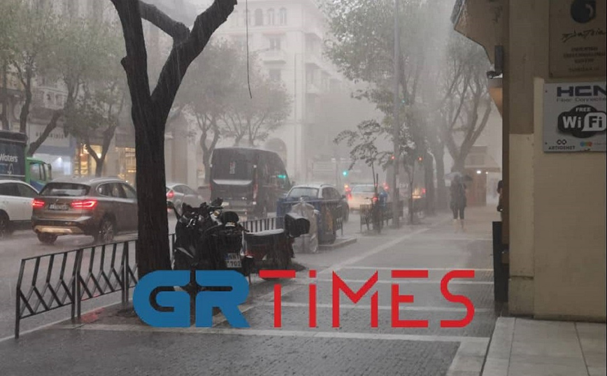 Άνοιξαν οι ουρανοί στη Θεσσαλονίκη, ενώ εκτός από την πολύ ισχυρή βροχόπτωση που σημειώνεται, πέφτουν και κεραυνοί.