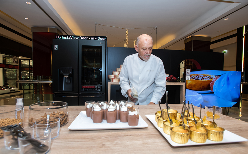 Επιπλέον, μια έκπληξη περίμενε όσους παρευρέθηκαν την Πέμπτη 24 Νοεμβρίου στην εκδήλωση, αφού ο γνωστός Pastry Chef Στέλιος Παρλιάρος βρέθηκε επίσης στο Golden Hall, αποκαλύπτοντας με μία live επίδειξη τα μυστικά για την τέλεια διακόσμηση των χριστουγεννιάτικων γλυκών. Σύμμαχος του για τις πετυχημένες συνταγές γλυκών το LG ψυγείο ντουλάπα Instaview Door-in-DoorTM.