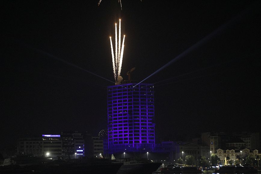 Αμέσως μετά την έλευση του 2023, δόθηκε το σύνθημα της αντίστροφης μέτρησης από τον φωταγωγημένο Πύργο του Πειραιά και άμεσα τo δεύτερο ψηλότερο κτήριο στην Ελλάδα «πλημμύρισε» με φως σε μια ξεχωριστή φωτιστική εγκατάσταση με εναλλασσόμενα χρώματα και ρυθμό.