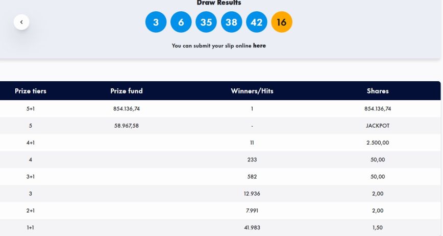 Στην κατηγορία 5+1 υπήρξε ένα νικητής που θα πάρει 854.136 ευρώ.