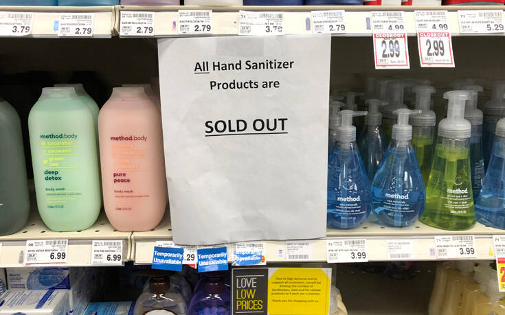 Με τον πανικό που επικράτησε σε πολλές χώρες, καθώς αυξάνονταν τα κρούσματα του κορονοϊού, παρατηρήθηκαν γρήγορα ελλείψεις σε αντισηπτικά χεριών.