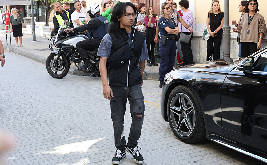 Μαζί με την Αντζελίνα Τζολί, ήταν και οι δύο γιοι της, Παξ και Μάντοξ Πιτ, οι οποίοι συνόδευσαν τη μητέρα τους στα γυρίσματα που πραγματοποιήθηκαν στο θέατρο «Απόλλων» του Πύργου. Στις φωτογραφίες, η Τζολί φορά μια γκρι ρόμπα και έχει πιασμένα τα μαλλιά της σε έναν αριστοκρατικό κότσο.