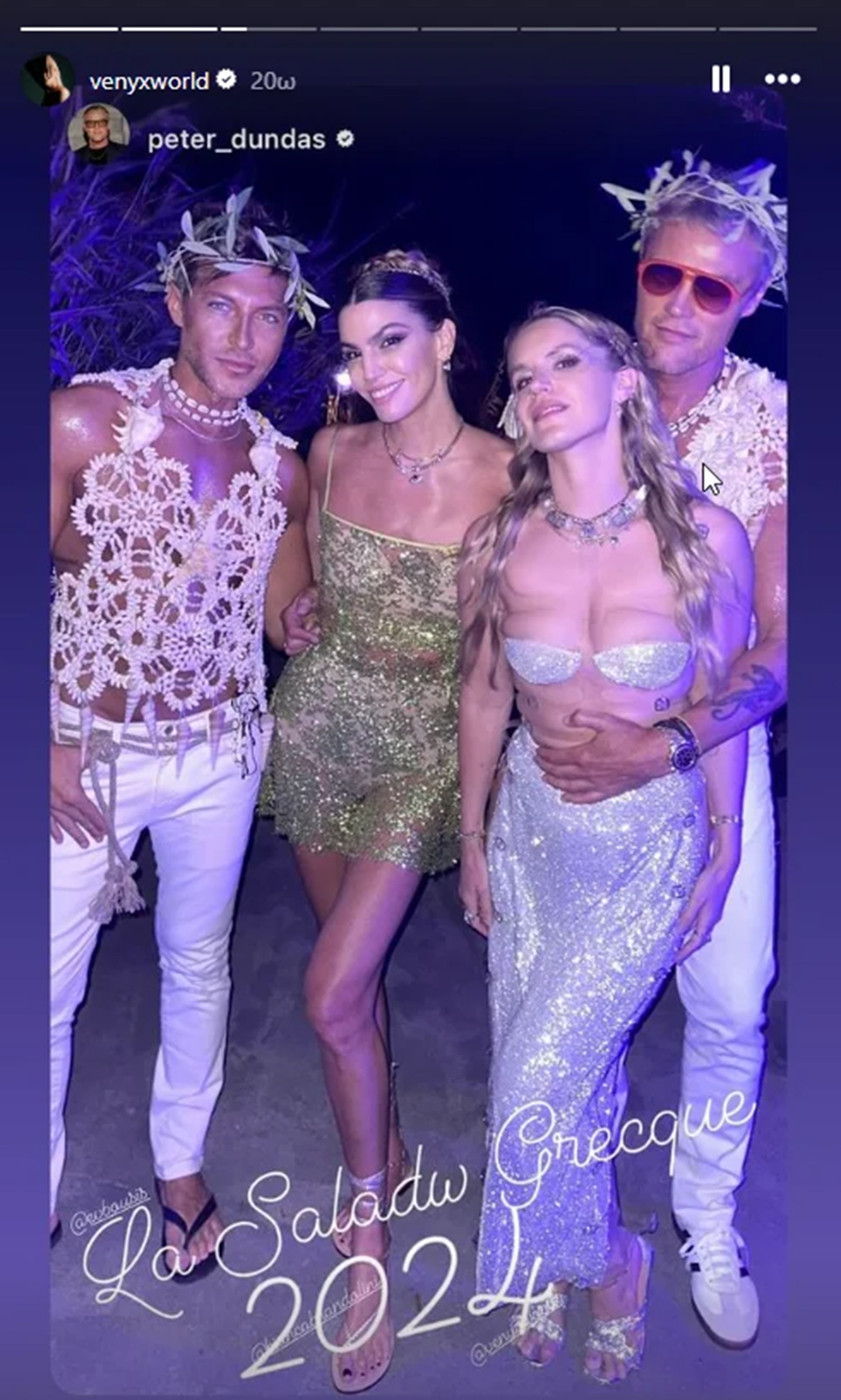 Μαζί της ήταν ο επιχειρηματίας και σύντροφός της, Martin Pacanowski, η αδελφή της Ηλέκτρα και οι φίλες της, Μπιάνκα Μπραντολίνι και Τατιάνα Σάντο Ντομίνγκο. Επίσης, o αδελφός της, Τεό Νιάρχος, και η σύντροφός του, Καμίλ Ρόου, αλλά και οι κουμπάροι της Peter Dundas και Evangelo Bousis.