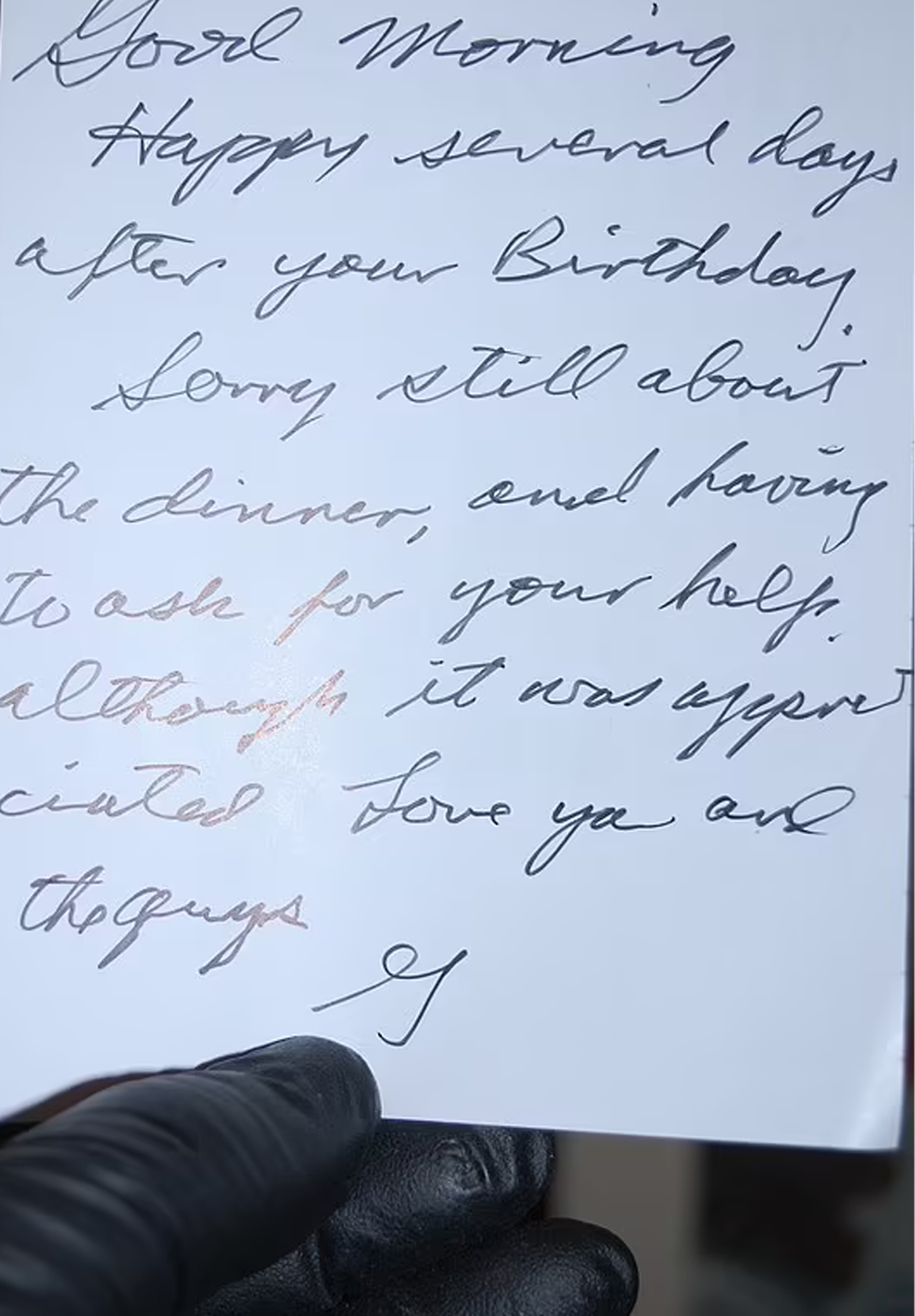 Ανάμεσα στα πιο σπαρακτικά σημειώματα της συλλογής είναι ένα στο οποίο ο ηθοποιός ζητά συγγνώμη από την Μπέτσι επειδή χρειάστηκε τη βοήθειά της για να ετοιμάσει δείπνο για τα γενέθλιά της: «Καλημέρα. Χρόνια πολλά μερικές μέρες μετά. Συγγνώμη και πάλι για το δείπνο και που χρειάστηκε να ζητήσω τη βοήθειά σου, παρότι ήταν πολύτιμη». «Σ’ αγαπώ, και τα παιδιά επίσης. Γ.» τελείωνε το σημείωμα.