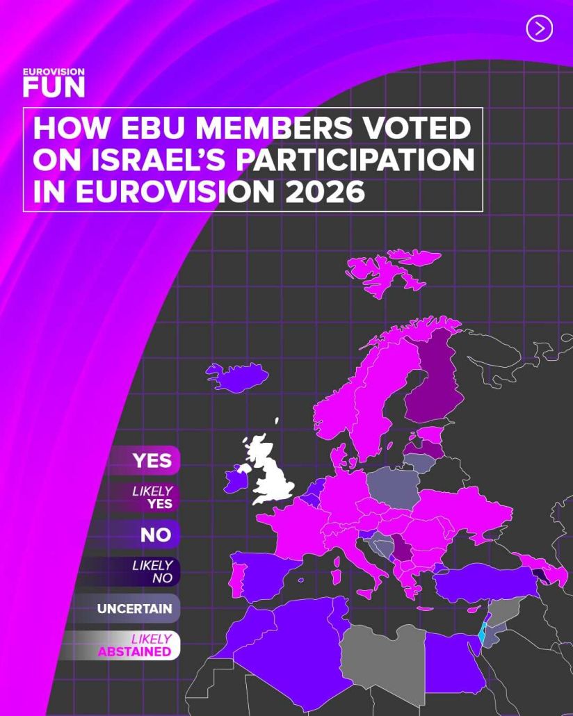 Τα μέλη της Ένωσης ενέκριναν τη συνέχιση της συμμετοχής του Ισραήλ στη διοργάνωση του 2026, η οποία είναι προγραμματισμένη να διεξαχθεί τον ερχόμενο Μάιο στη Βιέννη.