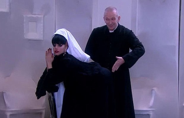 Μήπως, όμως, τελικά το παράκανε λίγο; Σε ένα βίντεο που κυκλοφόρησε για την εκπομπή του Gaultier, η Lady παρουσιάζεται μεταμφιεσμένη σε καλόγρια!