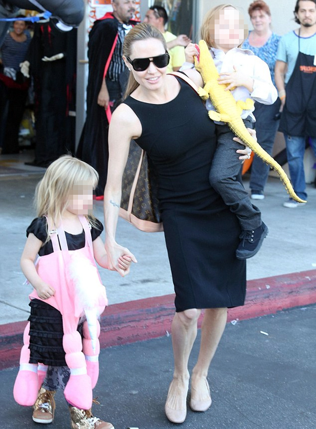 Παιδί φαίνεται πως ξαναγίνεται η 37χρονη Angelina Jolie, καθώς περνά το Halloween παρέα με τα έξι παιδιά της. Χθες ο φακός την εντόπισε με τα τρία από τα παιδιά σε κατάστημα με εποχιακά, για να προμηθευτούν τα απαραίτητα για τις ημέρες.