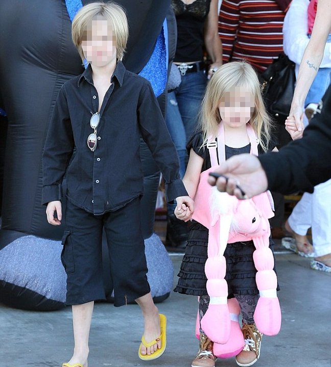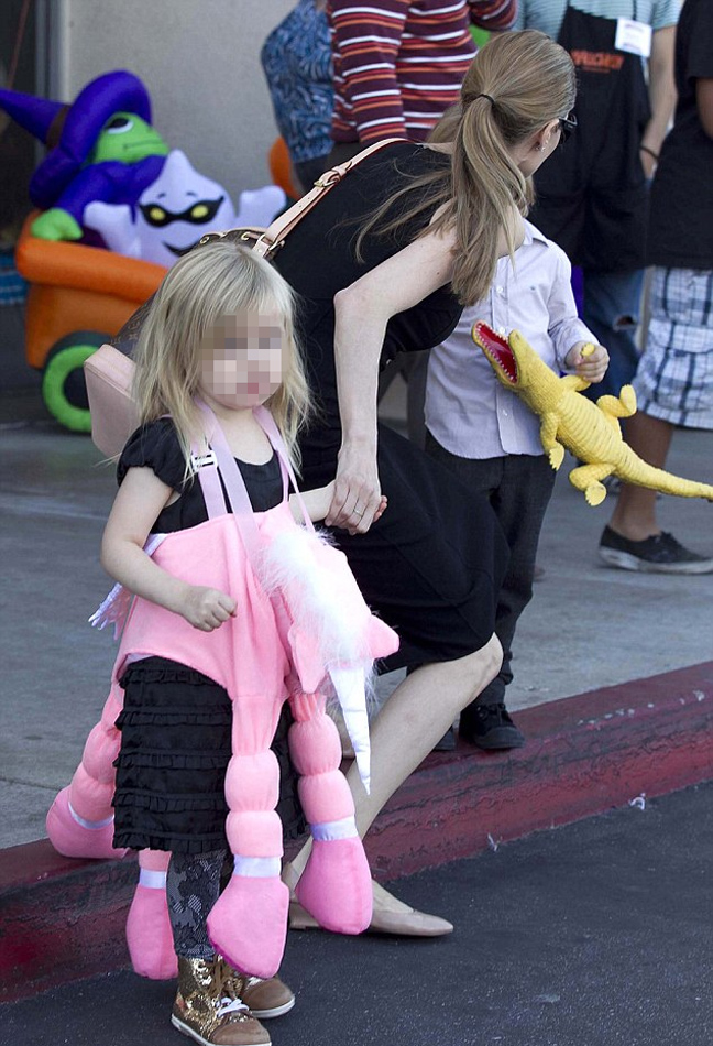 Η 6χρονος Shiloh και τα δίδυμα Vivienne και Knox μπήκαν γρήγορα στο πνεύμα του Halloween αλλά αυτή που ξεχώρισε ήταν η 4χρονη Vivienne που βγήκε από το μαγαζί ντυμένη ροζ μονόκερως.
