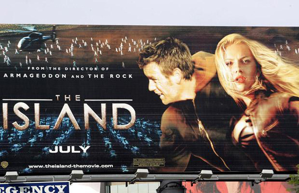 Όντας στο τιμόνι, η προσοχή της αποσπάστηκε σε γιγαντοαφίσα της ταινίας «The Island», με την ίδια να καρφώνεται στο δικό της στήθος, που λίγο έλειψε να την κάνει να τρακάρει…