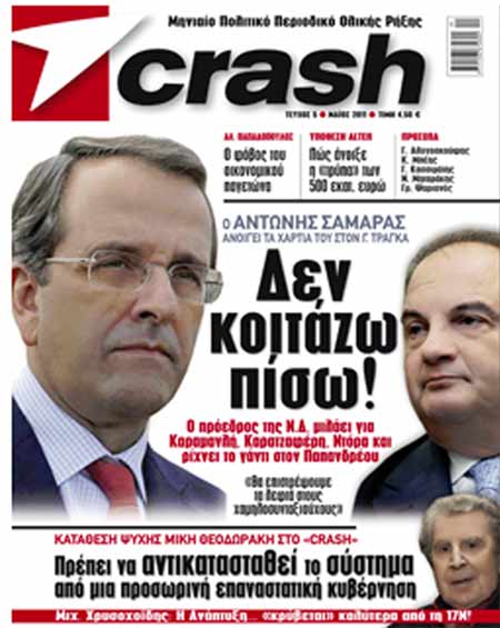 Το Crash Μαΐου που κυκλοφορεί σήμερα είναι πιο ανατρεπτικό από ποτέ. Ο πρόεδρος της Νέας Δημοκρατίας Αντώνης Σαμαράς ανοίγει τα χαρτιά του στο Γ. Τράγκα και μιλάει για τις σχέσεις του με τον Καραμανλή, για τον Καρατζαφέρη, την Ντόρα και τον Γιώργο Παπανδρέου.
