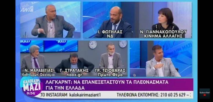 Ενώ ήταν σε εξέλιξη η συζήτηση για τα ελληνικά πλεονάσματα με αφορμή και την δήλωση της Κριστίν Λαγκάρντ «Να επανεξεταστεί ο στόχος για πρωτογενές πλεόνασμα 3,5%» ο δημοσιογράφος Γιάννης Στρατάκης έπεσε από την καρέκλα και «εξαφανίστηκε» από το πλάνο.