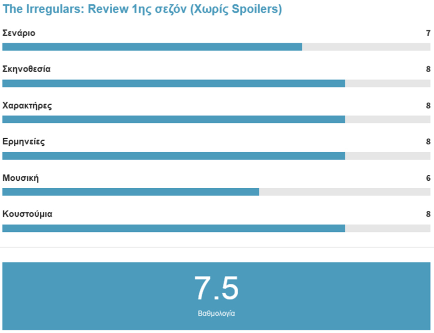 Η προσπάθεια εκσυγχρονισμού της σειράς με πιο σύγχρονες μελωδίες είναι κάτι που για εμένα δεν λειτούργησε. Τέλος να αναφέρω πως οι χαρακτήρες δεν αποτελούν και παράδειγμα πρωτότυπης γραφής αλλά σε καμία περίπτωση δεν είναι ενοχλητικοί ή κακό γραμμένοι. Για όσους θα μπείτε στην διαδικασία να δείτε την σειρά μόνο και μόνο για τον Sherlock να μην έχετε υψηλές προσδοκίες καθώς ναι μεν αποτελεί μεγάλο κομμάτι της σειράς αλλά σε καμία περίπτωση δεν είναι το κεντρικό της ενδιαφέρον. Η σειρά έχει ήδη ανανεωθεί για 2η σεζόν!