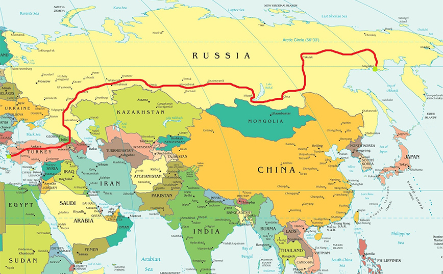 Τουρκία, Γεωργία και Ρωσία/Σιβηρία είναι οι χώρες που θα φιλοξενήσουν την διαδρομή των 14.500 χλμ. ως την παραθαλάσσια Magadan. Αντιπαλεύοντας τις γεωμορφολογικές ιδιαιτερότητες της αραιοκατοικημένης Σιβηρίας, ο Κωνσταντίνος Μητσάκης θα επιχειρήσει να ανταποκριθεί επάξια στις αντίξοες απαιτήσεις του “SYM SIBERIA” και να οδηγήσει την SYM ΝΗ-Τ 300 στις ακτές του Ειρηνικού μετά από 35 ημέρες ταξιδιού. Από εκεί, και αφού αναπληρώσει τις δυνάμεις του ο αναβάτης για λίγο στο τρένο μέχρι πίσω στη Μόσχα με τη μοτοσυκλέτα φορτωμένη, θα συνεχίσει να προσθέτει χιλιόμετρα στο κοντέρ της ταξιδεύοντας από τη ρωσική πρωτεύουσα μέχρι την Αθήνα για την επιστροφή της, γράφοντας συνολικά σχεδόν 18.000 χιλιόμετρα!