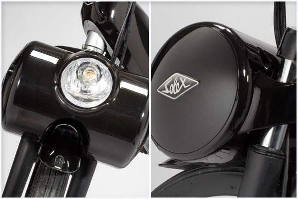 Η τελική ταχύτητα είναι προκαθορισμένη με «κόφτη» στα 36 χιλιόμετρα την ώρα. Αν τώρα η σκέψη του δίχρονου κινητήρα έρχεται σε αντίθεση με την αισθητική του ενδιαφερόμενου, πλέον υπάρχει και η επιλογή του e-Solex. Η εξέλιξη αυτή προέρχεται και πάλι από τη Γαλλία, και μάλιστα φέρει την υπογραφή του Pininfarina.