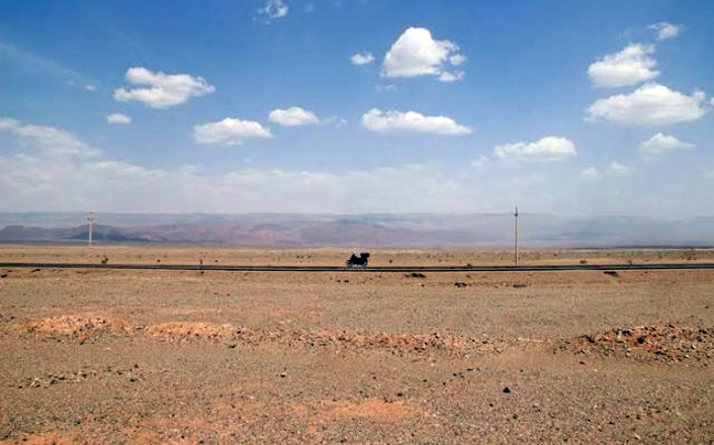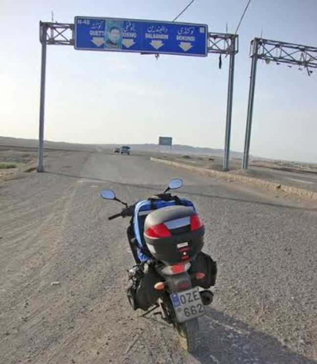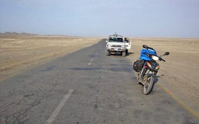 Παρόλα αυτά, το μικρό μαύρο παπί συνέχιζε ακάθεκτο την πορεία του μέσα στο λιοπύρι μιας απόλυτα επίπεδης ερήμου. Από δω και πέρα, ως την πόλη Κουέτα του Πακιστάν, ήξερα ότι αυτή θα ήταν η ζεστή καθημερινότητα της ερήμου Βαλουχιστάν, της Γεδρωσίας του Μεγαλέξανδρου.