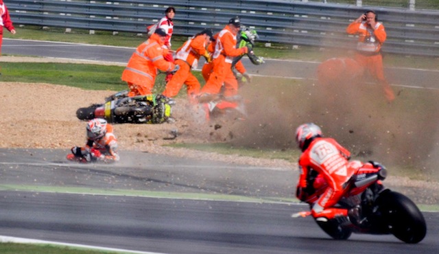 Οι πτώσεις στα MotoGP είναι οι πιο επικίνδυνες και οι πιο επώδυνες, καταλήγοντας στους σοβαρότερους τραυματισμούς, καθώς οι ταχύτητες είναι πολύ υψηλές. Αξιοσημείωτο είναι πως οι πτώσεις στην κατηγορία αυτή έχουν σημειώσει τη μεγαλύτερη αύξηση την τελευταία 8ετία.