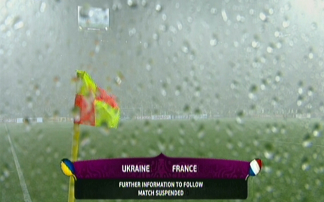 Τη διακοπή της αναμέτρησης μεταξύ των Εθνικών Γαλλίας και Ουκρανίας διέταξε ο διαιτητής, λόγω ακραίας βροχόπτωσης.