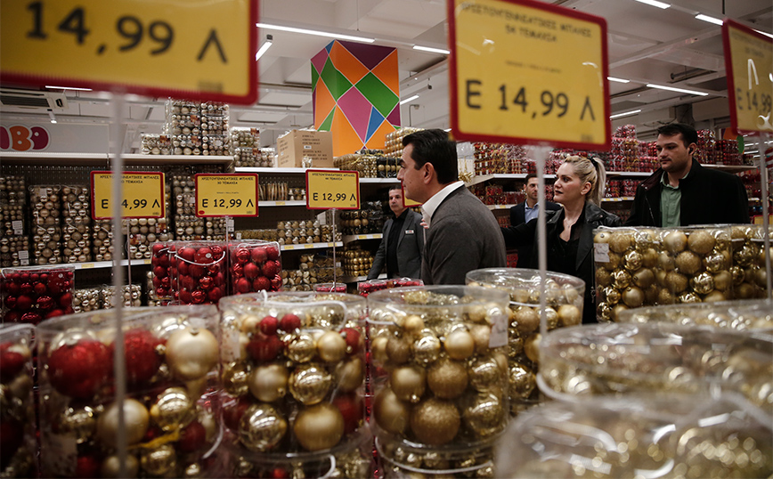 «Σήμερα εδώ, σε ένα μεγάλο κατάστημα το οποίο πουλάει εκτός από παιχνίδια, στολίδια, δέντρα χριστουγεννιάτικα και λαμπάκια, βλέπουμε ότι οι τιμές είναι μειωμένες μεσοσταθμικά κατά 20%. Έχουμε μειώσεις που φτάνουν και το 30%, όπως είδαμε εδώ στα λαμπάκια που από 29,99 έχει μειωθεί η τιμή τους στα 19,99 ευρώ, δηλαδή έχουμε 10 ευρώ μείωση για τα 500 λαμπάκια» δήλωσε.