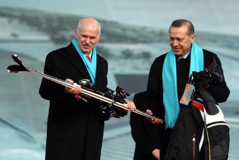 Φορώντας το γαλάζιο κασκόλ των αγώνων εμφανίστηκε ο έλληνας πρωθυπουργός στο στάδιο του Ερζερούμ, όπου θα φιλοξενηθούν οι χειμερινοί πανεπιστημιακοί αγώνες. Ο πρωθυπουργός της Τουρκίας, Ταγίπ Ερντογάν, αμέσως μετά τις ομιλίες προσέφερε ορισμένα συμβολικά δώρα (μπουφάν και πέδιλα του σκι) στον κ. Παπανδρέου. Η εκδήλωση στο στάδιο έκλεισε με μουσική του έλληνα συνθέτη Σταμάτη Σπανουδάκη.
