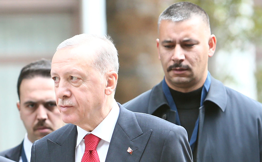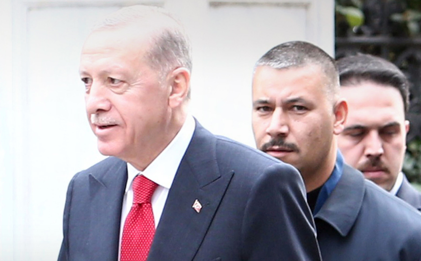 Όπως φαίνεται στις εικόνες που καταγράφηκαν, ο δίμετρος σωματοφύλακας δεν άφησε ούτε στιγμή από τα μάτια του τον τούρκο πρόεδρο από την ώρα που αποβιβάστηκε στο «Ελευθέριος Βενιζέλος».