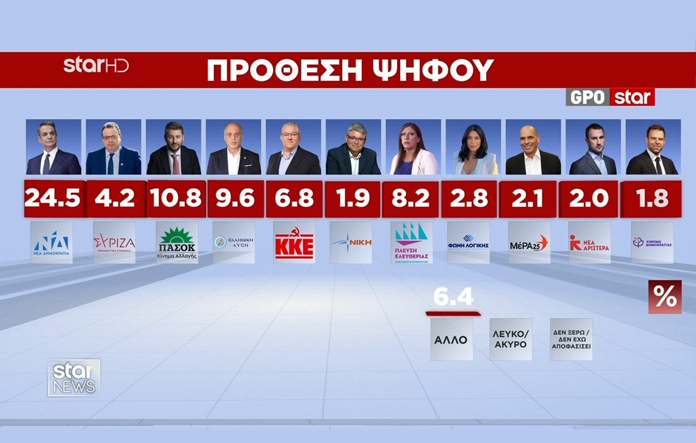 - Νέα Δημοκρατία: 24,5