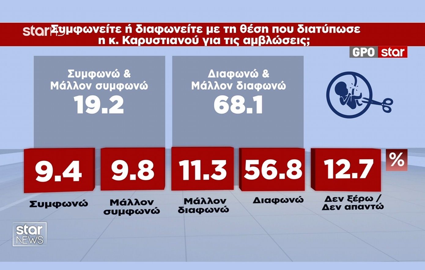 Το 68,1% των ερωτηθέντων παίρνει αποστάσεις από τις πρόσφατες δηλώσεις της Μαρίας Καρυστιανού.