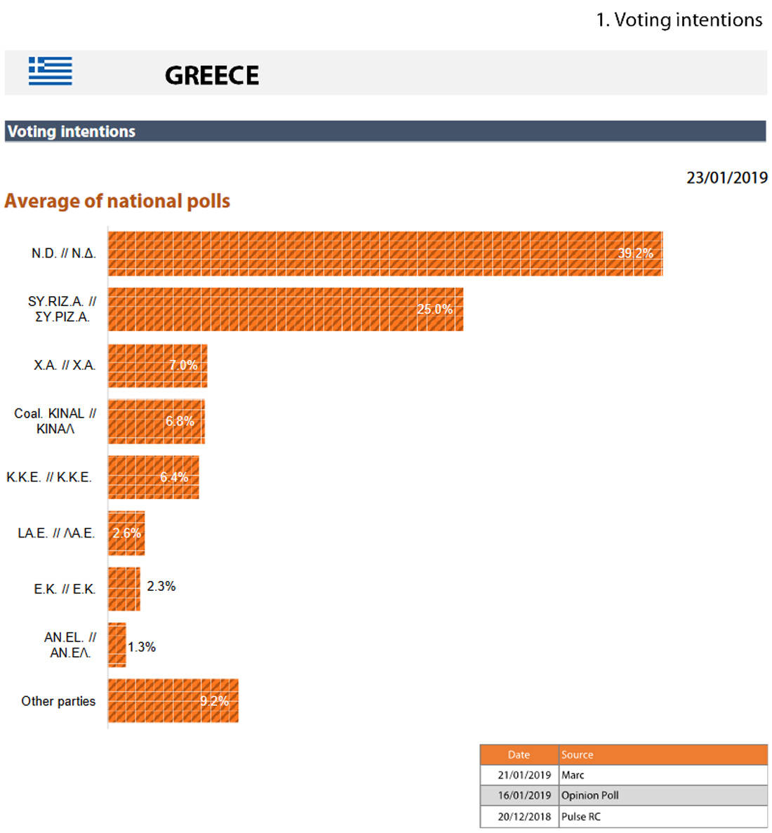 Οι τάσεις του εκλογικού σώματος περίπου τέσσερις μήνες πριν τις ευρωεκλογές του Μαΐου και πριν τις εθνικές εκλογές που το αργότερο θα πραγματοποιηθούν τον Οκτώβριο του 2019, καταγράφονται σε έρευνα του Ευρωπαϊκού Κοινοβουλίου, ενόψει της μάχης των ευρωπαϊκών καλπών.