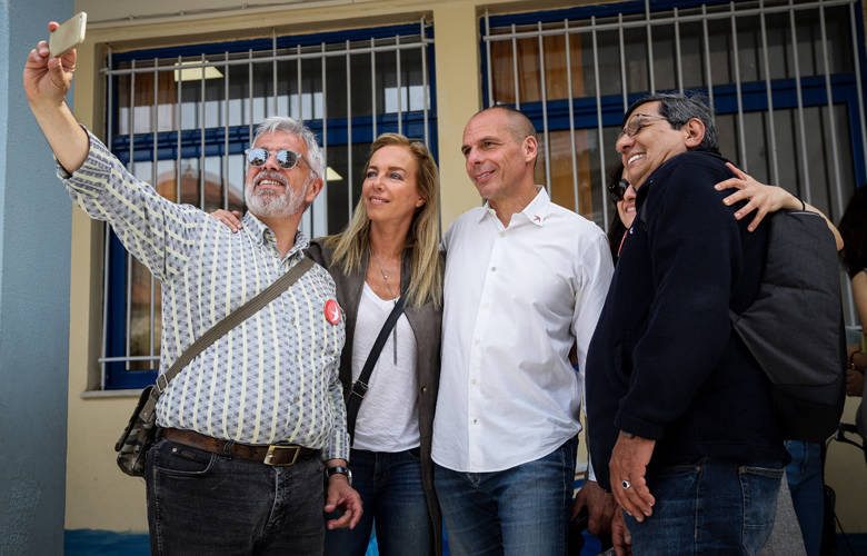 Ευδιάθετος και χαμογελαστός, έχοντας στο πλευρό του την αγαπημένη του Δανάη Στράτου, ψήφισε στις εκλογές 2019 στο 2ο Δημοτικό Σχολείο Παλαιό Φαλήρου o γραμματέας του ΜέΡΑ25, Γιάννης Βαρουφάκης.