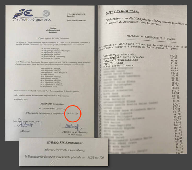Η απαιτητή βαθμολογία για να σε δεχθούν για συνέντευξη στα κορυφαία ευρωπαϊκά πανεπιστήμια όπως η Οξφόρδη και το Cambridge ήταν 85/100. Οι βαθμολογητές είναι 2 ή και περισσότεροι, και διαγωνίζεσαι με μαθητές από όλη την Ευρώπη. Μετά από πάρα πολύ μεγάλη προσπάθεια, και ατελείωτα ξενύχτια διαβάσματος και επαναλήψεων πήρα το Baccalaureate με βαθμό 93,5/100 και ήμουν τρίτος σε κατάταξη μαθητής από όλα τα τμήματα όλων των εθνικοτήτων.