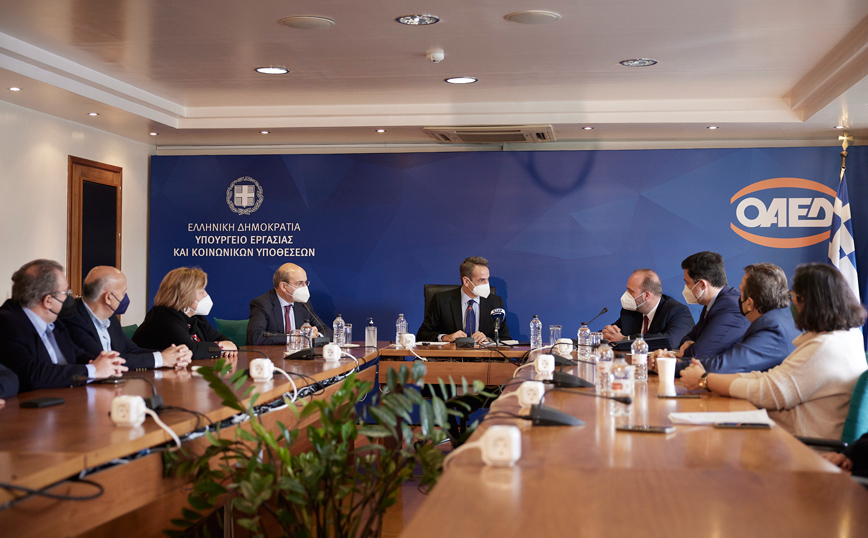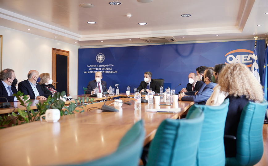 Τα προγράμματα του ΟΑΕΔ για το 2022, μέσω των οποίων θα προσφερθούν 86.000 νέες θέσεις εργασίας, βρέθηκαν στο επίκεντρο σύσκεψης που έγινε το πρωί στα κεντρικά γραφεία του Οργανισμού παρουσία του πρωθυπουργού. Ο Κυριάκος Μητσοτάκης ενημερώθηκε επίσης από τον υπουργό Εργασίας και Κοινωνικών Υποθέσεων Κωστή Χατζηδάκη και τον διοικητή του ΟΑΕΔ, Σπύρο Πρωτοψάλτη, για τα αποτελέσματα των προγραμμάτων τόνωσης της απασχόλησης την τελευταία διετία.