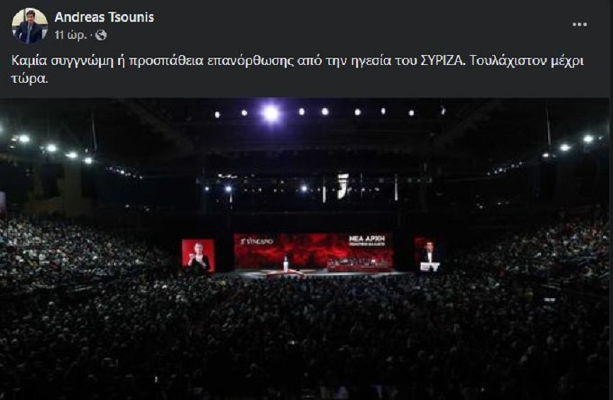 Η ανάρτηση που έκανε ο Ανδρέας Τσούνης: