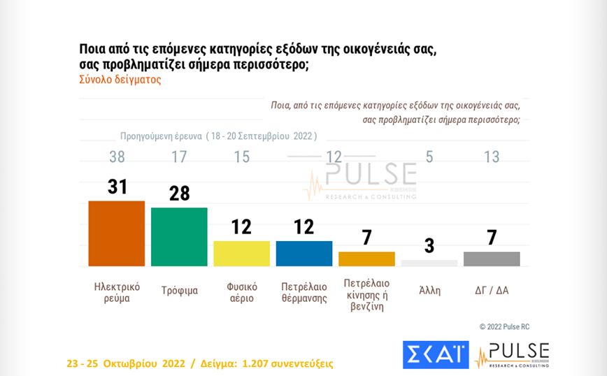 Για το ποια κατηγορία εξόδων προβληματίζει περισσότερο τους Έλληνες, τα ποσοστά έχουν ως εξής: