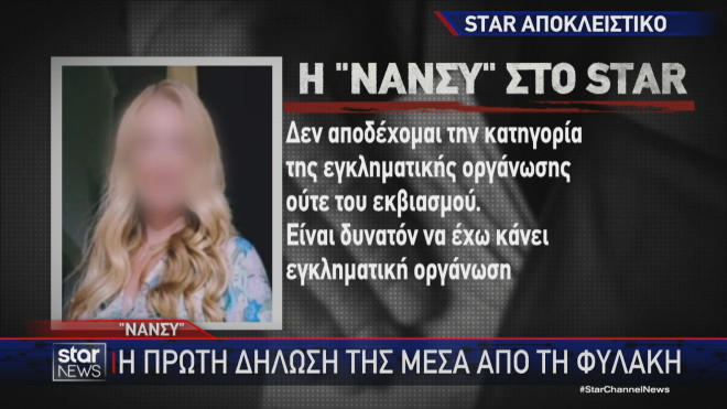 Την απάντησή της για τις βαριές κατηγορίες που αντιμετωπίζει δίνει μέσα από τη φυλακή η «Νάνσυ», η φερόμενη ως αρχηγός του κυκλώματος που εκβίαζε καταστηματάρχες στην Αθήνα.