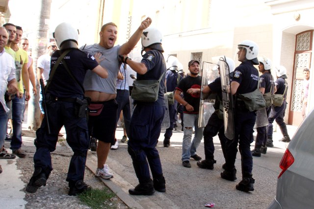 Οι δυνάμεις των ΜΑΤ που βρίσκονταν εκεί απώθησαν τους συγκεντρωμένους και έκαναν χρήση χημικών.
