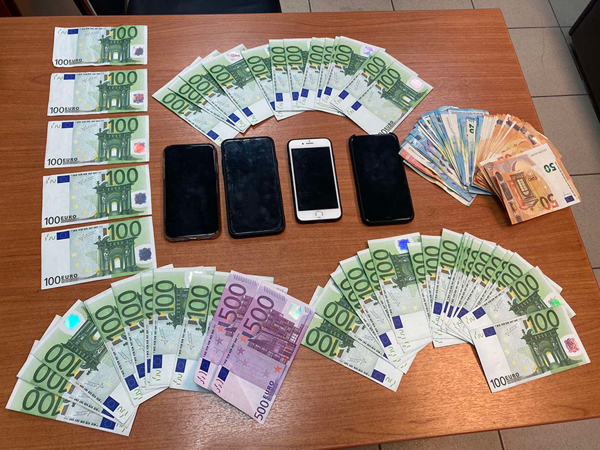 Στην κατοχή τους βρέθηκαν δύο πλαστά χαρτονομίσματα των 500 ευρώ και 48 πλαστά χαρτονομίσματα των 100 ευρώ.