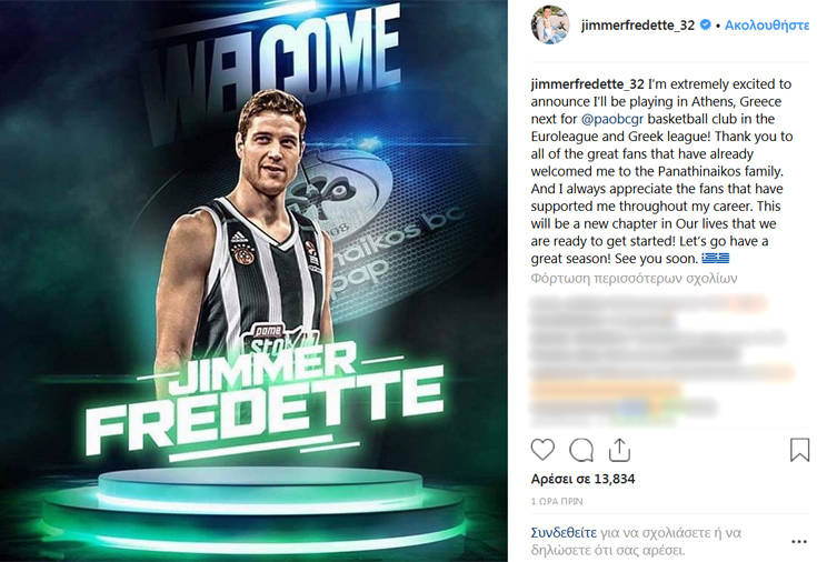 Ο Τζίμερ Φριντέτ είναι από σήμερα και επίσημα παίκτης του Παναθηναϊκού για τις επόμενες δύο σεζόν. Η εξέλιξη αυτή ξετρέλανε τον Αμερικανό σουτέρ, όπως ο ίδιος άφησε να φανεί με την πρώτη του «πράσινη» ανάρτηση.