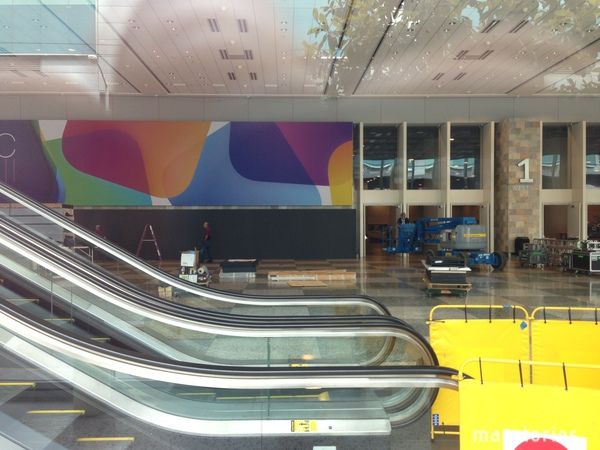 Όπως κάθε χρόνο έτσι και φέτος τα πρώτα συνεργεία έχουν μπει για να αναρτήσουν τα banners της Apple και να ετοιμάσουν το χώρο που θα υποδεχτεί τους 5.000 και παραπάνω συνέδρους.