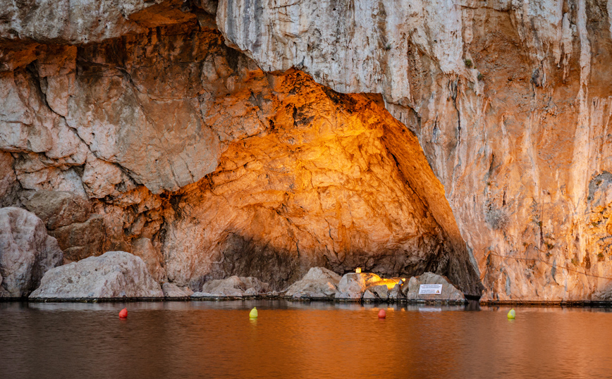 Στο σημείο που τελειώνει η λίμνη ξεκινάει ένα υπέροχο σπήλαιο, το οποίο συνοδεύεται και από έναν θρύλο. Σύμφωνα με το μύθο, η νεράιδα που ζει στα νερά της λίμνης παγιδεύει τους νεαρούς άντρες που προσπαθούν να το ανακαλύψουν, όπως συνέβη με τους 8 δύτες που έχασαν την ζωή τους κατά την διάρκεια της εξερεύνησής του. Μέχρι στιγμής το σπήλαιο έχει εξερευνηθεί σε μήκος 3.123 μέτρων, ενώ η μία από τις 14 σήραγγές του, με μήκος 800 μέτρα αποτελεί την μεγαλύτερη υποβρύχια σήραγγα σε ολόκληρο τον κόσμο.