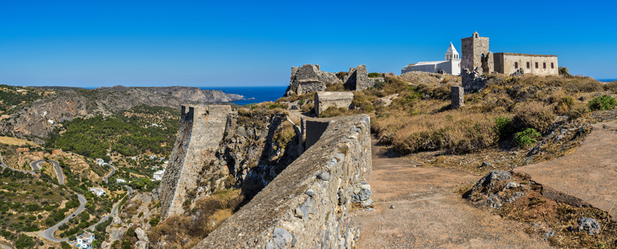 Ο λόγος για το εντυπωσιακό κάστρο της Χώρας, που «επιβλέπει» αφ’ υψηλού το επίνειό της, Καψάλι και φυσικά το απέραντο γαλάζιο. Στέκεται αγέρωχος φρουρός του οικισμού από τον 13ο αιώνα, και είναι διαφορετικά γνωστό ως φορτέτσα ή «Μάτι της Κρήτης», καθώς η στρατηγική τοποθεσία του επέτρεπε την παρατήρηση της κίνησης των καραβιών ταυτόχρονα σε τρία πελάγη: Ιόνιο, Αιγαίο και Κρητικό.