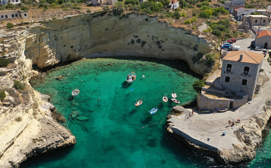 Προστατευμένος από την χερσόνησο Τηγάνι ο λιλιπούτειος ψαράδικος οικισμός κρύβει δυο εξίσου μικρές παραλίες, οι οποίες περιβάλλονται από κάθετους επιβλητικούς βράχους που προσθέτουν στο, ήδη, άγριο τοπίο επιπλέον επιβλητικότητα. Κοντά στις παραλίες υπάρχουν δύο θαλάσσιες σπηλιές στα βράχια που μπορεί όποιος θέλει να εξερευνήσει κολυμπώντας στα γαλαζοπράσινα νερά, ή να χαλαρώσει στην παραλία με θέα το κάστρο στο Τηγάνι.