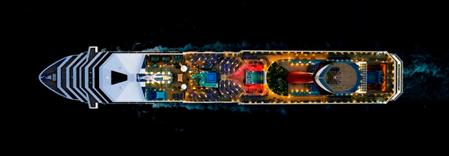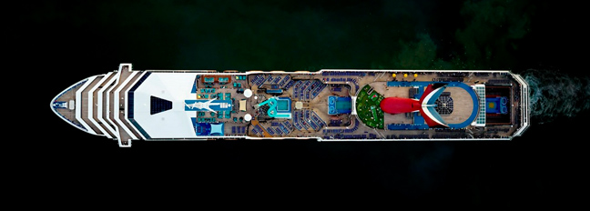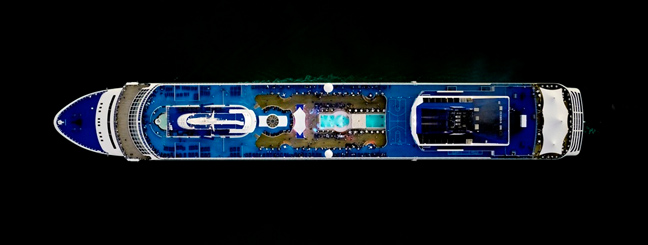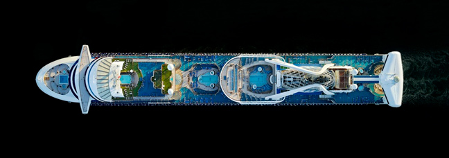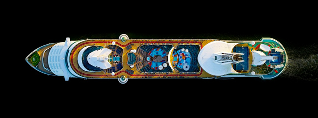 Ο φωτογράφος μαζί με τη κάμερά του, τράβηξε μερικά εντυπωσιακά καρέ πλοίων που μοιάζουν σαν πύργοι έτσι, από ψηλά. Η σειρά του τιτλοφορείται «Cruise Ships».