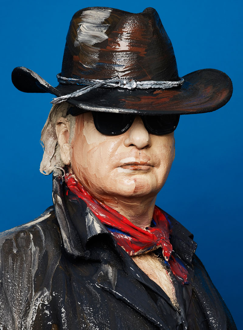 Τα έργα προκύπτουν αφού πρώτα καλύψει τα σώματα τους με ακρυλικά χρώματα και τα τοποθετήσει στο χώρο για να βάλει τις τελευταίες πινελιές.