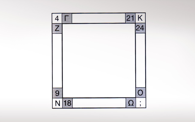 Λείπει ο αριθμός 7. Ξεκινάμε από το γράμμα Γ και κινούμαστε αντίθετα από τη φορά των δεικτών του ρολογιού, εναλλάσσοντας τους αριθμούς και τα γράμματα.