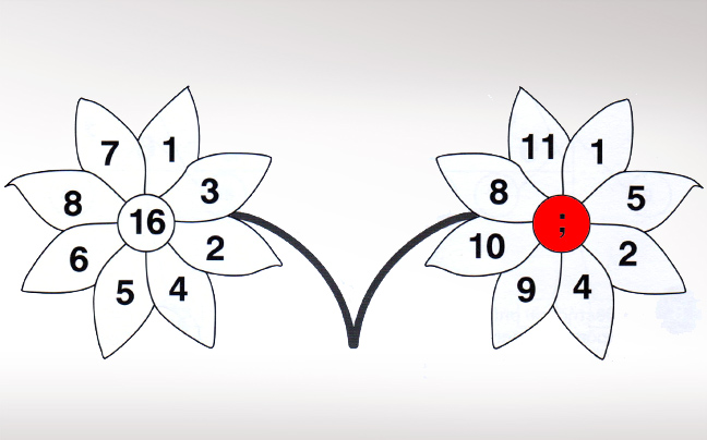 Λείπει το 26. Το άθροισμα των αριθμών στα τέσσερα πέταλα αριστερά μείον το άθροισμα των αριθμών στα τέσσερα πέταλα δεξιά ισούται με τον αριθμό στο κέντρο.