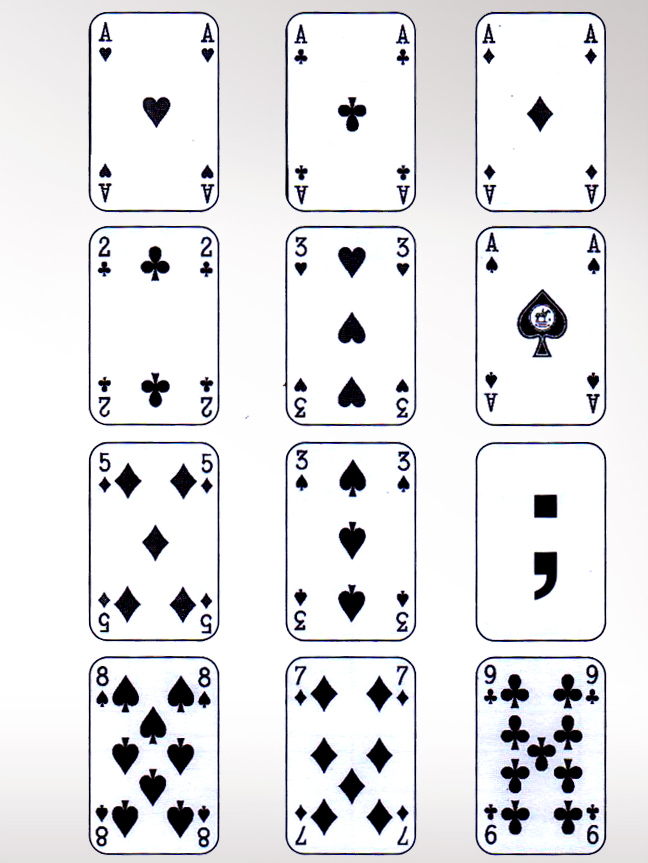 Το 4 κούπα. Κάθε σειρά έχει άθροισμα ίσο με το διπλάσιο της προηγούμενης της. Κάθε χρώμα υπάρχει μία φορά σε κάθε στήλη, ενώ σε κάθε γραμμή εναλλάσσονται κόκκινα με μαύρα.