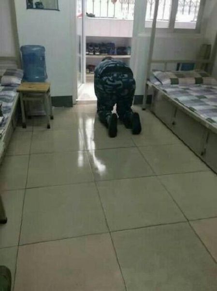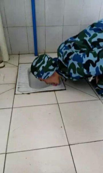 Ο Κινέζος στρατιώτης των φωτογραφιών πήρε εντολή να κάνει τον κοιτώνα να αστράφτει. Όταν τέλειωσε, ο αξιωματικός του είπε ότι δεν είχε κάνει καλή δουλειά. Κι εκείνος για να αποδείξει ότι τα πάντα ήταν πεντακάθαρα δεν δίστασε να πέσει στο πάτωμα και να γλείψει τα πάντα!