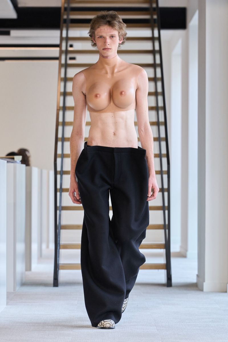 Ένα είναι σίγουρο: Με την οπτική του Duran Lantink δεν έπληξε κανείς. Μπορεί να σοκαρίστηκε, αλλά δεν βαρέθηκε. Μάλιστα, το κοινό γέλασε λυτρωτικά κατά την παρουσίαση του μοντέλου με το γυναικείο στήθος που αναπηδούσε κάπως αστεία, όπως αυτό περπατούσε στην πασαρέλα. Και κάπως έτσι έγινε viral.